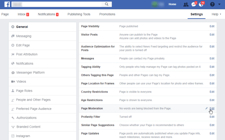 Now, what you have to do is that from there you will have to go to the General tab. After that you have to see the section titled Page Moderation. After that you will have to edit or make some changes so just click on the Edit link.