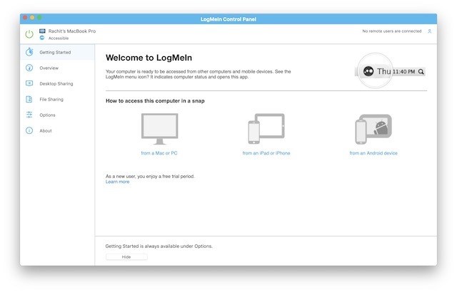 LogMeln not only helps the user to access their computers from any device but also holds other features like store, share and the option of collaboration of files on one click. LogMeln is focusing on the feature of providing the remote access to the personal computer so that the work can be done from any corner easily.