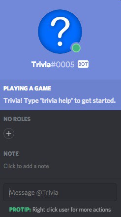 On the basic mode discord is widely used for the voice chats and discussions post the game and after adding the TriviaBot you can add some fun to your community. This will attract more active users as this bot adds the feature of multiplayer gaming which holds around 3000 questions and 24 categories including Film, television, sports and many more to test your knowledge.